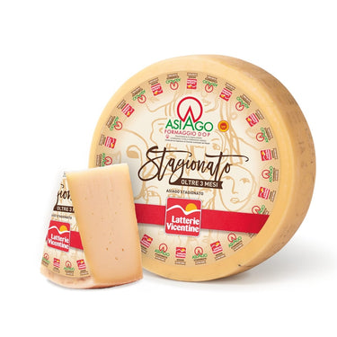 L'Asiago DOP Stagionato è un formaggio a pasta semi-dura prodotto nel territorio veneto con latte vaccino proveniente dalle aziende agricole locali. Grazie a una stagionatura di almeno 3 mesi, questo formaggio acquisisce una personalità definita, rappresentando un equilibrio perfetto tra intensità e delicatezza. È un prodotto versatile, ideale sia come formaggio da tavola che come ingrediente per arricchire diverse preparazioni culinarie.